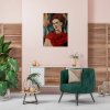 Tento portrét zachycuje slavnou mexickou malířku Fridu Kahlo - vlastním jménem Magdalena Carmen Frida Kahlo y Calderón (6.7.1907 – 13.7.1954) v elegantní kombinaci realismu a art deco stylu. Kontrast černobílé tváře s výrazně červeným šátkem a geometrickým pozadím dodává obrazu dramatický a nadčasový nádech. Umělecké zpracování precizně vystihuje Fridinu sílu, vášeň a osobitost, zatímco detailní práce s olejovými barvami podtrhuje hloubku a intenzitu výrazu. Dílo je dokončeno závěrečným matným lakem, který chrání jeho jedinečnou krásu a autentičnost.