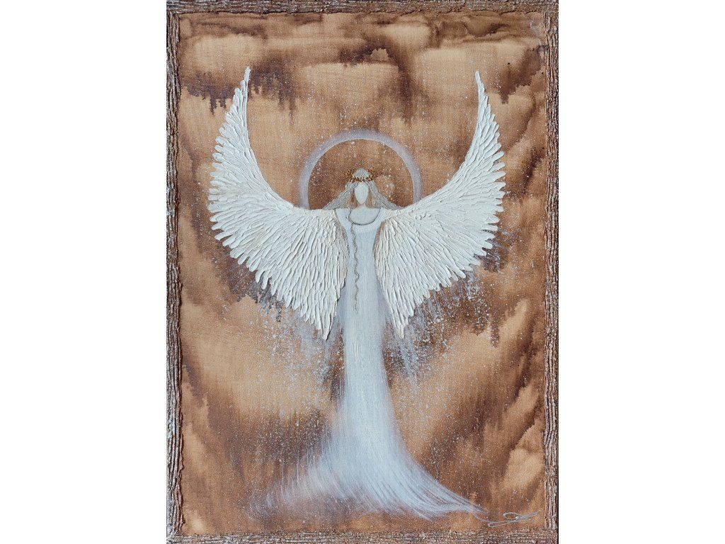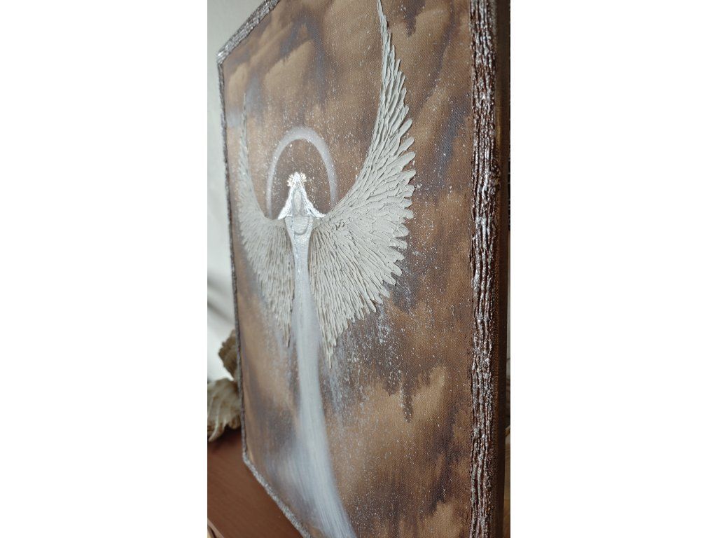 Velký anděl70x50cmOlej na plátně + stříbrná barva + reliéf